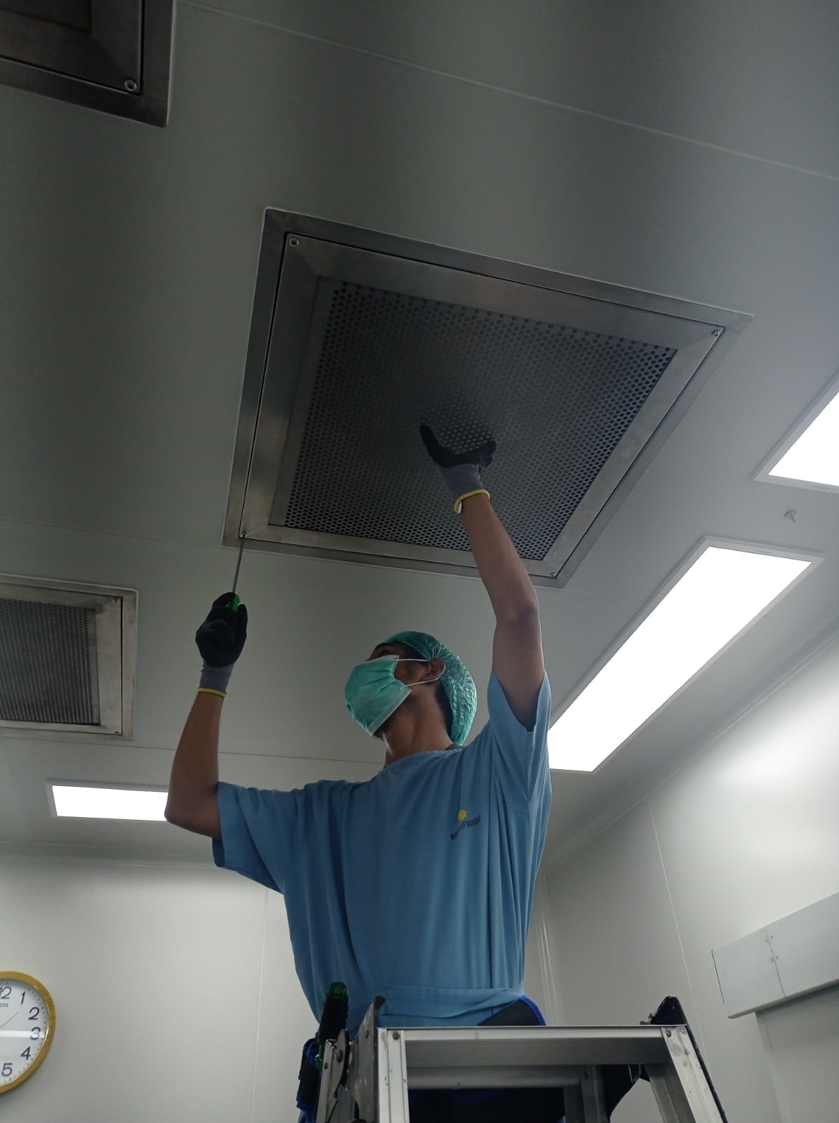 Setelah filter HEPA baru dipasang, dua uji kritis dilakukan untuk memastikan filter berfungsi dengan sempurna.